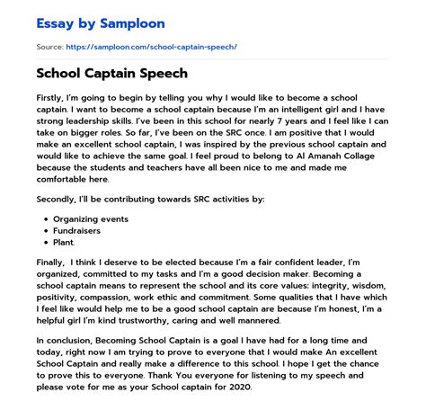 Read Online school captain speech Library Binding